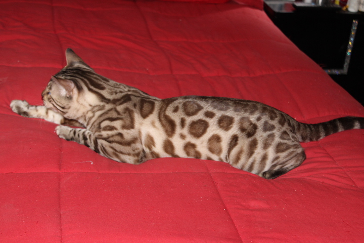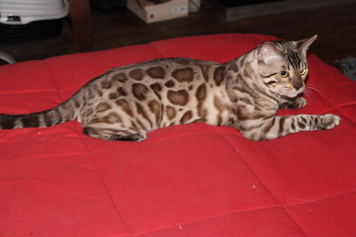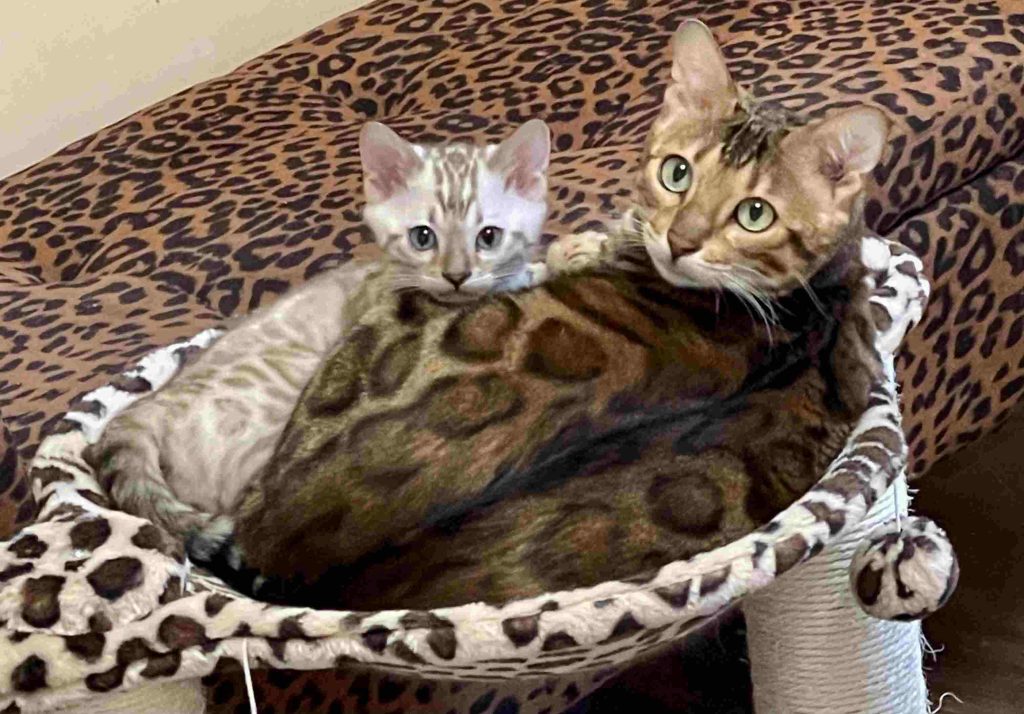 When our Bengal babies go their new homes, we send them off with $400 to $500 worth of items. We do this because we love our children, and want them to be happy. When I purchased my initial Bengals, the breeders gave me nothing. This told me that they did not care about their Bengal Kittens. I do care, and I want all of my babies to be happy. So I send things from our home, to the kittens new home. This way our Bengal Kittens will have things that they are familiar with, and that smell like home.